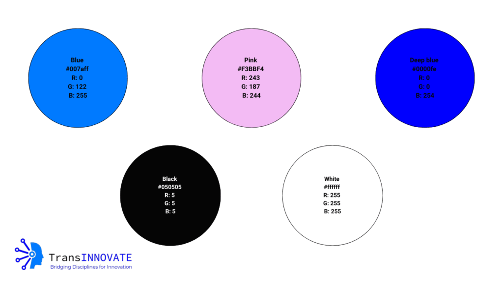 The project’s colour palette is based on five core tones – blue, deep blue, black, pink and white – reflecting creativity, trust, inclusiveness and clarity. Use of other colour combinations outside this core visual identity is not recommended.
